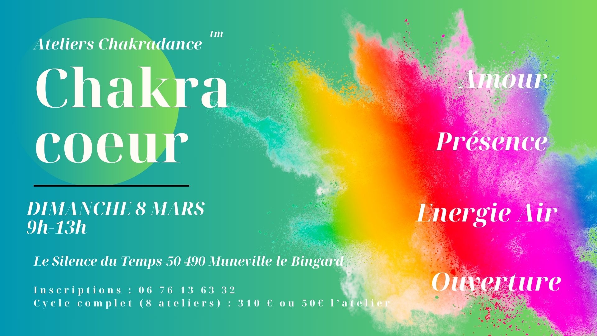De novembre à juin, nous vous proposons un cycle complet de Chakradance, chaque deuxième dimanche matin de 9h à 13h, autour des chakras. Vous pouvez venir au cycle complet ou choisir les chakras qui vous appellent.